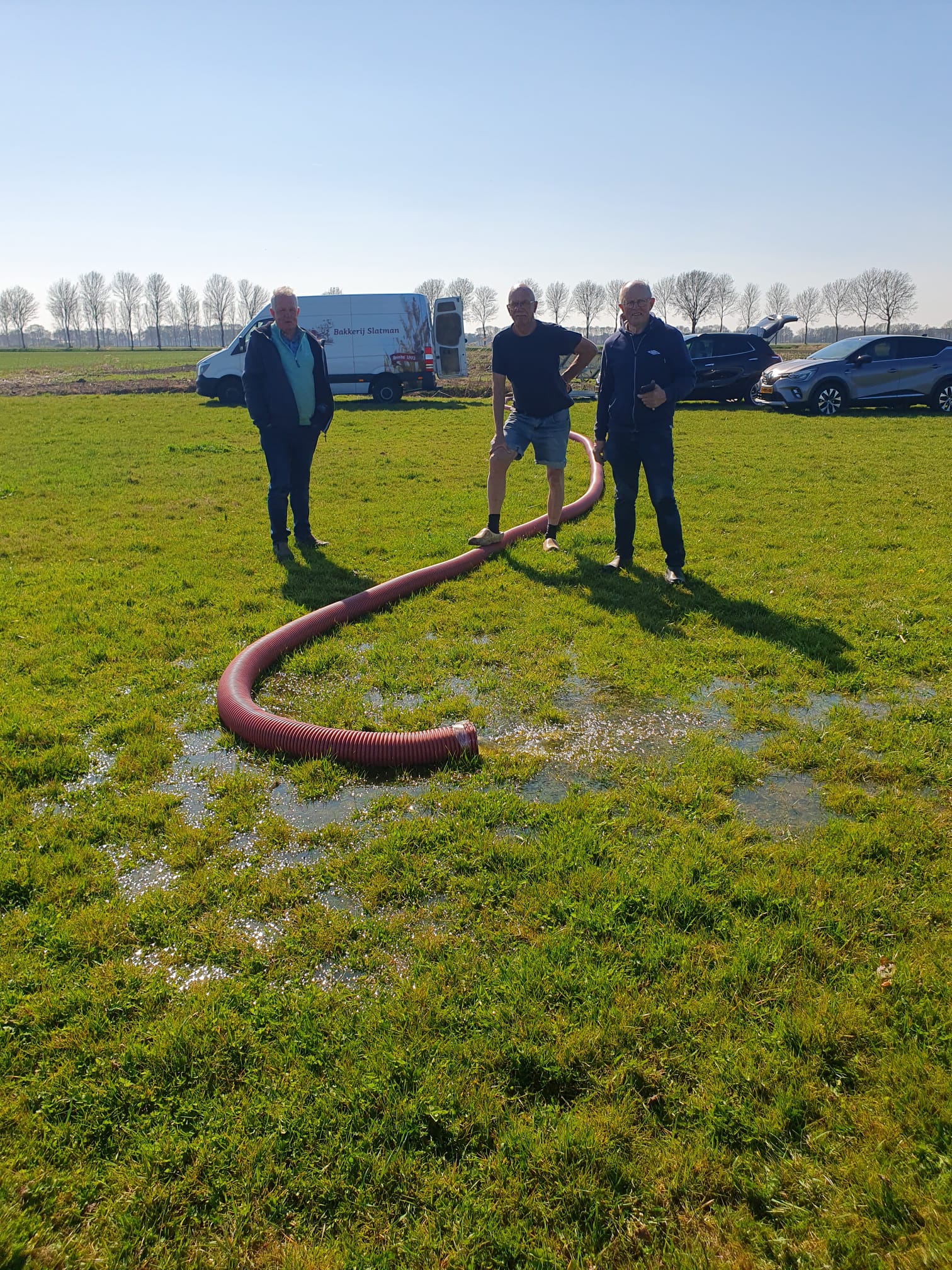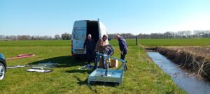 Nadat de werkgroep en boer Wenker een plas-dras gebied is aangevraagd en hiervoor de vergunning is geregeld is vandaag 3 april door vrijwilligers van onze vereniging de pomp op het nieuw aangelegde plas-dras gebied van boer Wenker geplaatst en in werking gezet. Officieel momentje: Dick Wierbos zet de pomp voor het eerst aan.