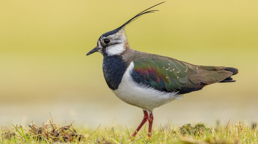 Northern Lapwing (Vanellus vanellus) Guarding its territory in grassland Breeding Habitat. This Plover has spectaculair Song Flight and Display Behaviour. Wildlife Scene of Nature in Europe.